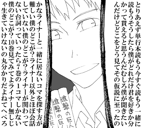 ライナーほど恋愛に向かない奴はいないな…って思った、具体的な根拠はないけど(笑)。