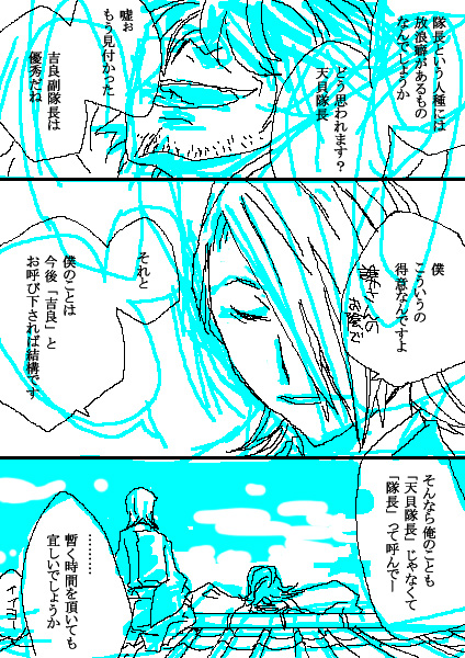 ※天貝隊長と貴船三席の設定がまだジャンプの告知ページでしか出てなかった頃に描いたものなので、口調や性格は完全に捏造です。ご容赦下さい。